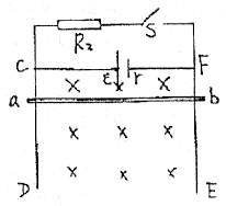 20.如图所示,电源电动势ε=2.4V,内阻r=0.4Ω,CD、EF为竖直平面内的两条平行导轨,处在水平匀强磁场中,其电阻忽略不计。ab为金属棒,长L=25cm,电阻