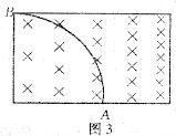 7.如图3所示,不计重力的带电粒子射入一自左向右逐渐增强的匀强磁场,由于周围空气作用,其运动径迹恰为一段圆弧AB,从图中可以判断( )
