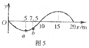 13.如图5所示是某横波的波形图线,波沿x轴负方向传播,已知a质点从图中位置第一次运动到平衡位置用了0.2s,那么b质点从图中位置第一次运动到平衡位置用_________s。