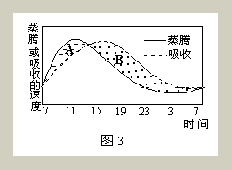 图2中曲线与纵坐标和横坐标围成的面积的含义分别为,在横坐标以下表示相应的时段内有机物(以CO2的吸收量表示)的净消耗量,在横坐标以上表示在相应的时段内,有机物(以CO2的吸收量表示)的净产生量即积累量,要求一昼夜中的有机物的积累量,应将横坐标以上曲线与坐标所围成的面积减去横坐标以下曲线与坐标轴所围成的面积。