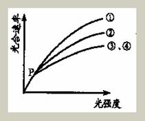 例3 在下列4种不同的实验条件下,测定光照强度对光合作用速率的影响
