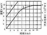 (19分)汽车在平直的公路上由静止启动,开始做直线运动,图中曲线1表示汽车运动的速度和时间的关系,折线2表示汽车的功率和时间的关系。设汽车在运动过程中阻力不变,在16s末汽车的速度恰好达到最大。