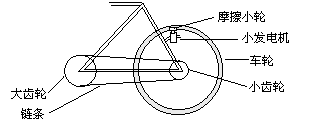 解:大小齿轮间、摩擦小轮和车轮之间和皮带传动原理相同,两轮边缘各点的线速度大小相等,由v=2πnr可知转速n和半径r成反比;小齿轮和车轮间和轮轴的原理相同,两轮上各点的转速相同。由这三次传动可以找出大齿轮和摩擦小轮间的转速之比n1∶n2=2∶175