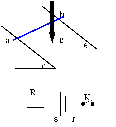 =1.0W,与两导轨垂直地放置导轨上,匀强磁场方向竖直向下,磁感强度1.0T,电源电动势e =12V,内阻r