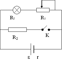 14.如图所示电路,已知滑动变阻器R1=2W(最大值为4W),R2=6W,电源内阻r =1W,当K闭合时,电源功率P=16W,输出功率P出=12W,这时灯泡正常发光,求: