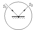光线射到平面镜上,其反射光在筒壁上呈一光斑S2。当平面
