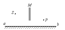 如图下左所示,S为点光源,M为遮光板,ab为平面镜。试作出由S发出,经平面镜反射后通过P点的光线。