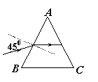 23. 如图所示,钠黄光以450角入射到等腰三棱镜的一个侧面AB上,测得其折射光线偏离了原方向150角。则此钠黄光在该三棱镜中的光速是多少?若要此折射光线在三棱镜内的另一侧面AC上发生了全反射,那么此三棱镜的顶角A的最小值是多少?如果换成紫光以同样的角度入射,则能否在AC面上发生全反射?