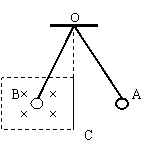 如图,单摆摆球带正电,摆长为l,且不导电,悬挂于O点。当摆球摆过竖直线OC时便进入或离开一个匀强磁场,此磁场的方向与单摆摆动平面垂直。在摆角