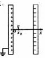 16.(14分)如图所示,平行板电容器两极板间有场强为 E的匀强电场,且带正电的极板接地。一质量为 m,电荷量为+q的带电粒子(不 计重力)从 x轴上坐标为 x0 处静止释放。