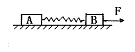 F拉B,从静止开始经过一段时间后A、B一起匀加速,速度达v时它们的总动能为Ek,