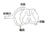 脊髓横切面及其一侧的一对脊神经根示意图