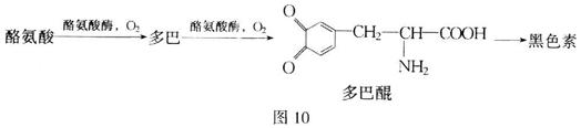 黑色素是先由酪氨酸酶催化酪氨酸氧化为醌类物质,然后再进行一系列反应而形成的。反应过程如图10所示: