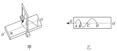 11.(4分)在演示简谐运动图象的沙摆实验中,使木板沿直线OO′做匀加速直线运动,摆动着的漏斗中漏出的沙在木板上显示出如图乙所示曲线,A、B、C、D均为直线OO′上的点,测出