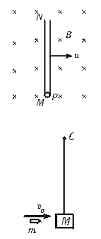 (13分)如图所示,在空间有磁感应强度大小为B、方向垂直纸面向里的匀强磁场.光滑绝缘空心细管MN的长度为h,管内M端有一质量为m、带正电q的小球P,开始时小球P相对管静止,管带着小球沿垂直于管长方向以恒定速度u向右运动,不考虑重力及其他阻力.