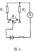 。现将滑动变阻器的滑动片P由A端向B端滑动,在这个过程中电流表的示数先减小后增大,并且滑动片P在滑动变阻器的中点位置时电流表的示数出现最小值。如果改变以上三个电阻的阻值,使