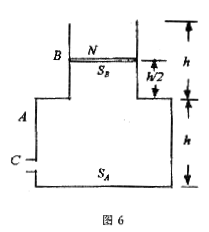 12.(23分)如图6所示,是一个放置在水平面上的容器的截面图,它由A、B两部分构成,两部分都是圆筒形,其高度均为h,底面积