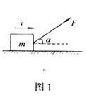 1.如图1所示,质量为m的木块在与水平方向成α角斜向上的拉力F作用下沿水平地面匀速滑动,木块与水平面之间动摩擦因数为μ。则在滑动过程中( )