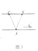 4.图3所示为一条河流,河水流速为v。一只船从A点先后两次渡河到对岸,船在静水中行驶的速度为u。第一次船头向着AB方向行驶,渡河时间