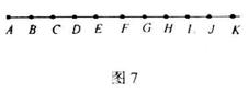 8.如图7所示,在弹性介质中的一条直线上有一系列的质点,其中质点A是波源。相邻质点间的距离均为1.0m。当t=0时,质点A开始向下做简谐运动,经过0.1s第一次到达最大位移处,此时质点C刚好开始振动。则下面说法正确的是( )