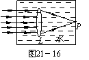 8.如图21-13所示,一束平行主轴的光线入射凸透镜,折射后会聚于透镜另一侧焦点F处.若在O.F间垂直主轴放置一块较厚的玻璃板,则光线从玻璃板射出后将 ( )