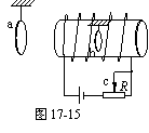2.如图17-13所示,金属导轨上的导体棒ab在匀强磁场中沿导轨做下列哪种运动时,线圈c中将有感应电流产生 ( )