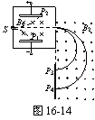 7.如图16-14所示为质谱仪测定带电粒子质量的装置的示意图.速度选择器(也称滤速器)中场强E的方向竖直向下,磁感应强度B1的方向垂直纸面向里,分离器中磁感应强度B2的方向垂直纸面向外.在S处有甲、乙、丙、丁四个一价正离子垂直于E和B1入射到速度选择器中,若m甲= m乙< m丙= m丁,v甲< v乙= v丙< v丁,在不计重力的情况下,则分别打在P1、P2、P3、P4四点的离子分别是 ( )