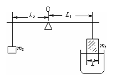 2.如图12-6所示是测定肥皂液表面张力系数的装置, 均匀的杠杆支点O在中央, 矩形铜丝框质量m1=0.4g, 其两脚间的距离L=5cm; 将其悬于杠杆上右端距中央L1=15cm处. 实验时将铜丝框浸没在肥皂水中, 在杠杆左端挂一砝码m2=1g, 将肥皂水杯缓缓下移, 使框上部离开液面形成肥皂膜. 此时若将m2移到距杠杆中央L2=12 cm处时, 杠杆刚好处于平衡状态. 试据此计算肥皂液的表面张力系数.(提示: 表面张力系数是指作用在液体表面单位长度分界线上的表面张力)