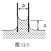 1.如图12-5 所示,毛细管内半径为r;竖直插在液体中.如已知液体的密度为ρ,表面张力系数σ,求液体上升的高度h.