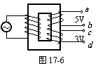 4.如图17-6所示,一理想变压器有两个副线圈,输出电压分别为3 V和5 V,要获得8 V输出电压,两个副线圈连接方法是 [ ]