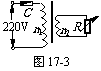 9.如图17-3所示,理想变压器原、副线圈匝数之比n1:n2=1:2,加在原线圈两端的电压为220 V,C为额定电流为1 A的保险丝,R为接在副线圈两端的可变电阻.要使保险丝不会熔断,则可变电阻的阻值不能小于 Ω.