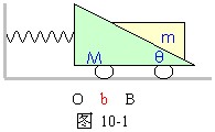 11、如图10-1所示,劲度系数为 K的轻质弹簧一端与墙固定,另一端与倾角为θ的斜面体小车连接,小车置于光滑水平面上。在小车上叠放一个物体,已知小车质量为 M,物体质量为m,小车位于O点时,整个系统处于平衡状态。现将小车从O点拉到B点,令OB=b,无初速释放后,小车即在水平面B、C间来回运动,而物体和小车之间始终没有相对运动。求:(1)小车运动到B点时的加速度大小和物体所受到的摩擦力大小。(2)b的大小必须满足什么条件,才能使小车和物体一起运动过程中,在某一位置时,物体和小车之间的摩擦力为零。![]()