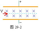 平行金属,板长1.4米,两板相距30厘米,两板间匀强磁场的B为1.3×10-3特斯拉,两板间所加电压随时间变化关系如29-1图所示。当t=0时,有一个a粒子从左侧两板中央以V=4×103米/秒的速度垂直于磁场方向射入,如29-2图所示。不计a粒子的重力,求:该粒子能否穿过金属板间区域?若不能,打在何处?若能,则需多长时间? (已知a粒子电量q=3.2×10-19库,质量m=6.64×10-27千克)