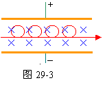 则在不加电压的时间内,a粒子恰好能在磁场中运动一周。当两板间又加上第2个周期和第3个周期的电压时,a粒子将重复上述的运动。故经13/4周期飞出板外(t=6.5×10-4秒)其运动轨迹如29-3图所示。