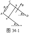 解析:本题的研究对象为ab棒,画出ab棒的平面受力图,如图34-2.ab棒所受安培力F沿斜面向上,大小为F=BIl=B2l2v/R,则ab棒下滑的加速度