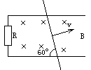 如图所示,平行金属导轨间距为d,一端跨接一阻值为R的电阻,匀强磁场磁感强度为B,方向垂直轨道所在平面,一根长直金属棒与轨道成60°角放置,当金属以垂直棒的恒定速度v沿金属轨道滑行时,电阻R中的电流大小为________,方向为________。(不计轨道与棒的电阻)