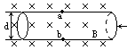17.如图为电磁流量计的示意图。直径为d的非磁性材料制成的圆形导管内,有导电液体流动,磁感应强度为B的匀强磁场垂直于导电液体流动方向而穿过一段圆形管道。若测得管壁内a、b两点间的电势差为U,则管中导电液体的流量Q=____m3/s。