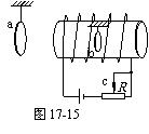 4.如图17-15所示,通电螺线管左侧和内部分别静止吊一环a和b,当变阻器R的滑动头c向左滑动时 ( )