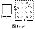 14.一个边长为a=1m的正方形线圈,总电阻为 0.1 Ω,当线圈以v = 2 m/s的速度通过磁感强度B = 0.5 T的匀强磁场区域时,线圈平面总保持与磁场垂直.若磁场的宽度b>1 m,如图17-24所示,求线圈通过磁场后释放多少焦耳的热量?