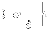 (D)K断开时,D2立即熄灭,D1亮一下再慢慢熄灭。