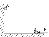 两带电小球A、B分别位于光滑且绝缘的竖直墙壁和水平地面上,在作用于B的水平力F的作用下静止于图示位置。现用力将B球向左推过一小段距离。试讨论两球重新平衡后它们之间的距离、推力F及B球对地的压力FN各将如何变化?