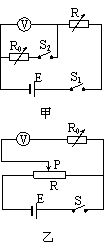 为了用半偏法测量该电压表的内阻,某同学设计了两种电路(图中的甲和乙),要使测量较精确,应选择图中的__________电路。在器材的选择上,除了电池组、导线、开关和待测电压表外,还应从提供的器材中选用_______(用器材前的序号字母表示)。