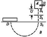 (10分)一质量为m,电荷量为q的带正电离子,从图示质谱仪的容器A下方的小孔S1进入电势差为U的匀强电场,进入时的初速可视为零,被加速后经孔S2、S3垂直于磁场方向(该方向垂直于纸面)进入磁感应强度为B的匀强磁场。在磁场中离子沿虚线所示轨道运动,最后打在照相底片上的D处。