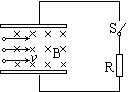 (15分)右图是磁流体发电机的原理示意图,通道的上、下两个面是两块平行金属板,水平放置,通道的横截面积是边长为d的正方形。匀强磁场的方向垂直前、后两个侧面(即垂直图中纸面向里),磁感应强度为B。一等离子体(即高温下电离的气体,含有大量带正电与负电的微粒,而从整体来说呈电中性)以速度v流过通道,这时两金属板上就聚集电荷,产生电压。已知发电机的等效内阻为r,负载电阻为R。试求:(1)发电机的电动势;(2)发电机的总功率;(3)为使等离子体以恒定速度v通过磁场,必须使通道两端保持一定的压强差