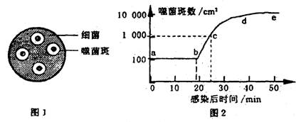 5.噬菌斑(如下图1)是在长满细菌的培养基上,由一个噬菌体侵染细菌后不断裂解细菌后产生的一个不长细菌的透明小圆区,它是检测噬菌体数量的重要方法之一。现利用连续取样、在培养基中培养的方法测得T4噬菌体在感染大肠杆菌后的数量变化曲线(下图2),下列有关该曲线的叙述中正确的是