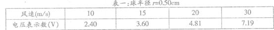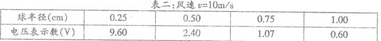 实验二:保持风速一定,换用同种材料、不同半径的实心球,记录了在球半径不同情况下电压表的示数