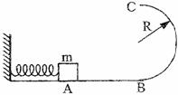 17.(16分)如图所示,光滑水平面AB与竖直面内的半圆形导轨在B衔接,导轨半径为R,一个质量为m的静止物体在A处压缩弹簧,在弹力的作用下获得某一向右的速度,当它经过B点进入导轨瞬间对导轨的压力为其重力的7倍,之后向上运动恰能完成半圆周运动到达C点,求: