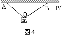 5、如图4所示,从水平天花板上的A、B两点拉下两根轻绳将质量为m的重物悬挂起来,已知AO<BO,且∠AOB>90°。若细绳AO、BO中的张力分别为TA、TB,则( )
