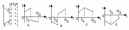 12(12分)、图中abcd为一边长为L、具有质量的刚性导线框,位于水平面内,bc边中串接有电阻R,导线的电阻不计.虚线表示一匀强磁场区域的边界,它与线框的ab边平行,磁场区域的宽度为2L,磁感强度为B,方向竖直向下.线框在一垂直于ab边的水平恒定拉力作用下,沿光滑水平面运动,直到通过磁场区域.已知ab边刚进入磁场时,线框便变为匀速运动,此时通过电阻R的电流的大小为i0,试在图的i-x坐标上定性画出:从导线框刚进入磁场到完全离开磁场的过程中,流过电阻R的电流i的大小随ab边的位置x变化的曲线。