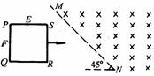 5、如图所示,PQRS为一正方形导线框,它以恒定的速度向右进入以MN为边界的匀强磁场,磁场方向垂直线圈平面,MN线与线框的边成450角.E、F分别为PS和PQ的中点.关于线框中的感应电流,正确的说法是: